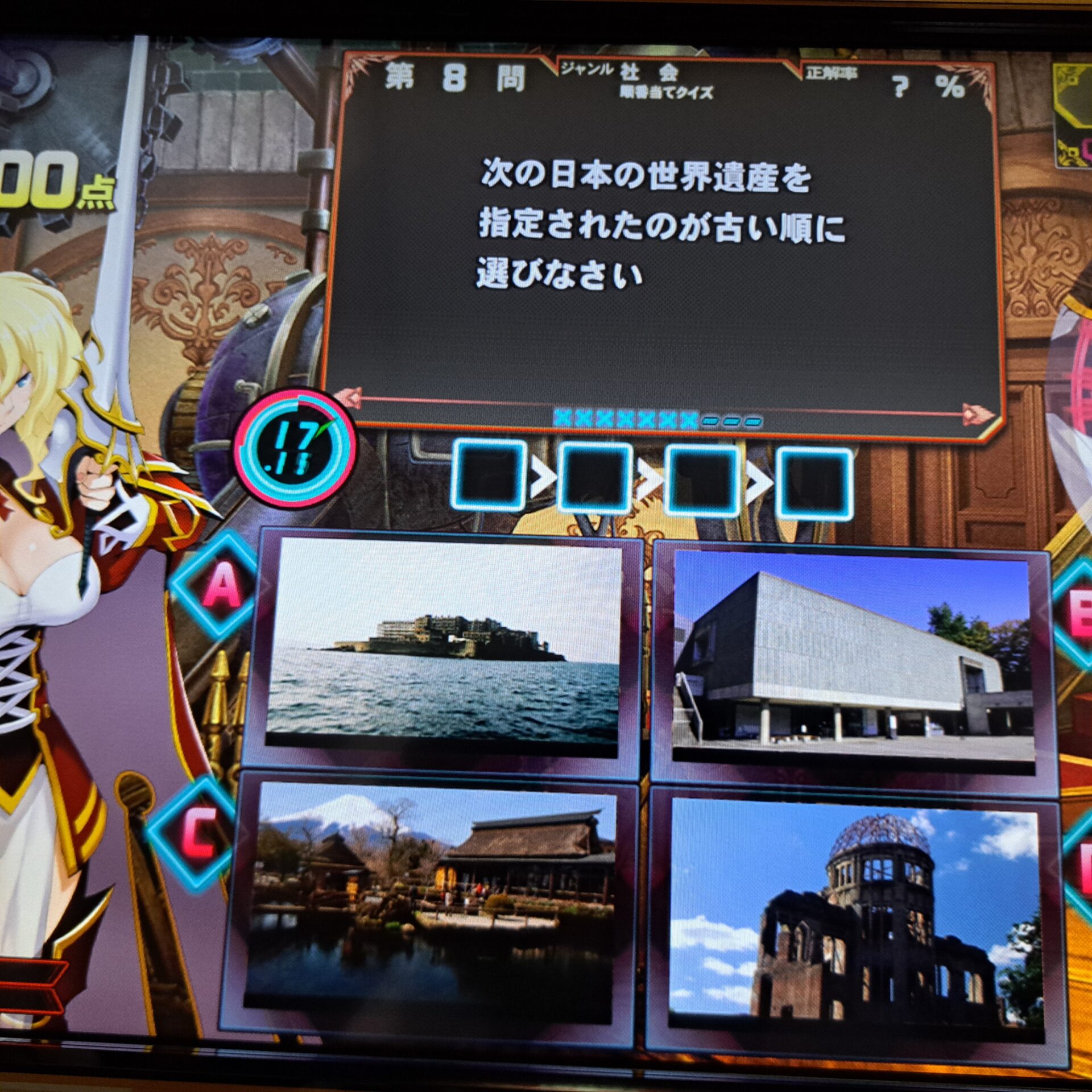 | 次の対戦格闘ゲームを発売された順に選びなさい | アルカナハート デモンブライド アクアパッツァ ニトロプラスブラスターズ |